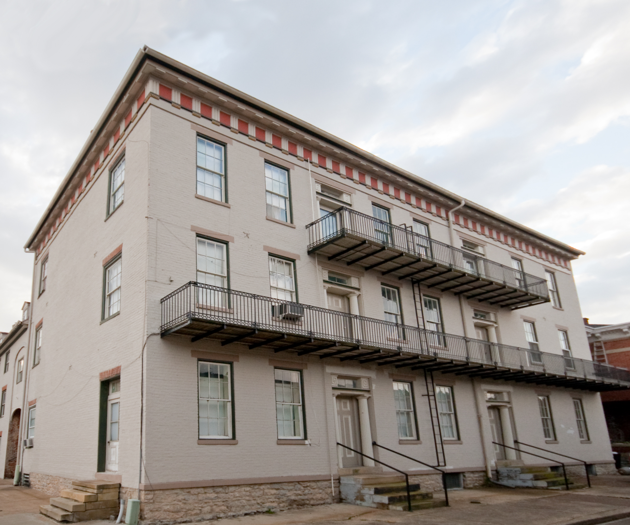 white brick building