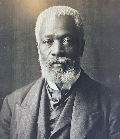 black and white photograph of African American man, white beard, dressed in suit